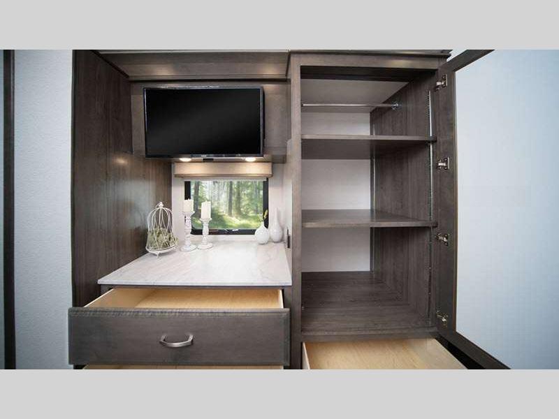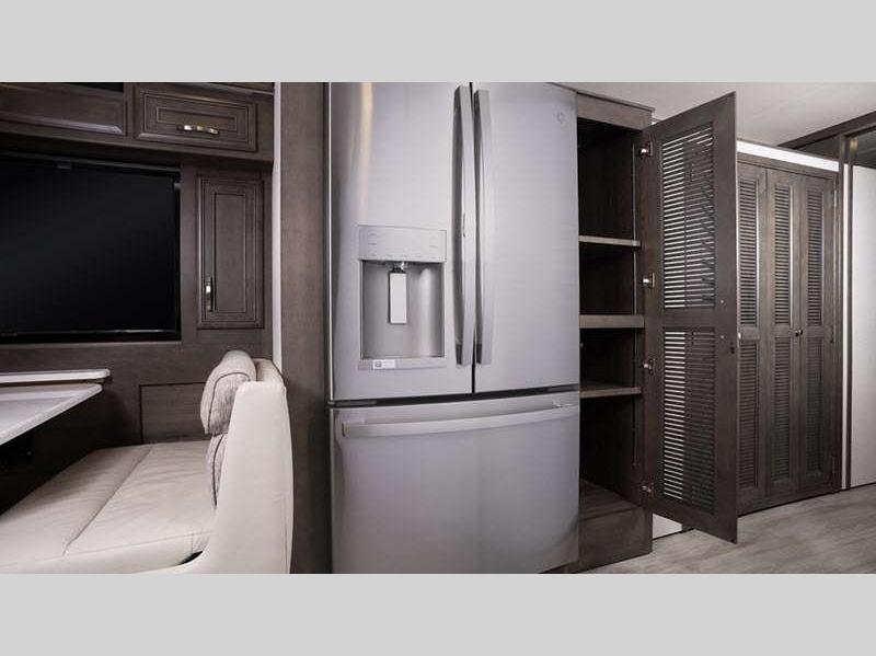 Sleeps 3 Slides 4 Length 37 ft 10 in Ext Width 8 ft 5 in Ext Height 12 ft 10 in Int Height 7 ft Interior Color Glacier, Summit, Valley Exterior Color Blue Dusk, Coral Nights, Crimson Sky, Sand Dunes Hitch Weight 10000 lbs GVWR 34320 lbs Fresh Water Capacity 100 gals Grey Water Capacity 62 gals Black Water Capacity 41 gals Tire Size 275/80R 22.5" Furnace BTU 35000 btu Generator Onan 8,000-watt diesel Fuel Type Diesel Engine Cummins B6.7 Chassis Spartan K1 Raised Rail Horsepower 360 hp Fuel Capacity 100 gals Wheelbase 236 in Available Beds King Power Head Lift Torque 800 ft-lb Refrigerator Type Stainless Steel Residential Convection Cooking Yes Cooktop Burners 2 Shower Size 36" x 36" Number of Awnings 1 Axle Weight Front 14320 lbs Axle Weight Rear 20000 lbs LP Tank Capacity 24.5 gals Water Heater Type Tankless AC BTU 30000 btu TV Info LR 50" Samsung 4K UHD Smart TV, BR 32" Samsung LED 1080P Smart TV, Ext. 43" Samsung 4K UHD Smart TV Awning Info Carefree Power Patio w/LED Lights Washer/Dryer Available Yes Gross Combined Weight 44320 lbs Shower Type Standard Electrical Service 50 amp Solar Wattage 400 watts Similar Floorplans
