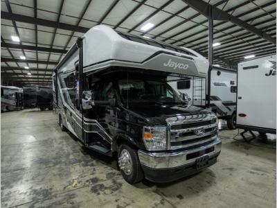 With any Greyhawk Class C gas motorhome by Jayco you will experience smooth sailing thanks to the JRIDE PLUS that comes with Koni shock absorbers, a computer-balanced driveshaft, Hellwig helper springs, and more. The Ford E-450 chassis with a 7.3L V8 325 HP engine will power your excursions, and you'll appreciate the added safety features for your peace of mind. Each model features a Sony infotainment center with Apple CarPlay and Android Auto, backup and side-view cameras, and a tire pressure monitor system the driver is sure to appreciate. Durable construction begins with Stronghold VBL roof, floor and sidewalls, bead-foam insulation, and a one-piece seamless fiberglass front cap. Head inside to find blackout night roller shades, LED-lit pressed countertops, an 84" interior ceiling height, and hardwood cabinet doors and drawers.